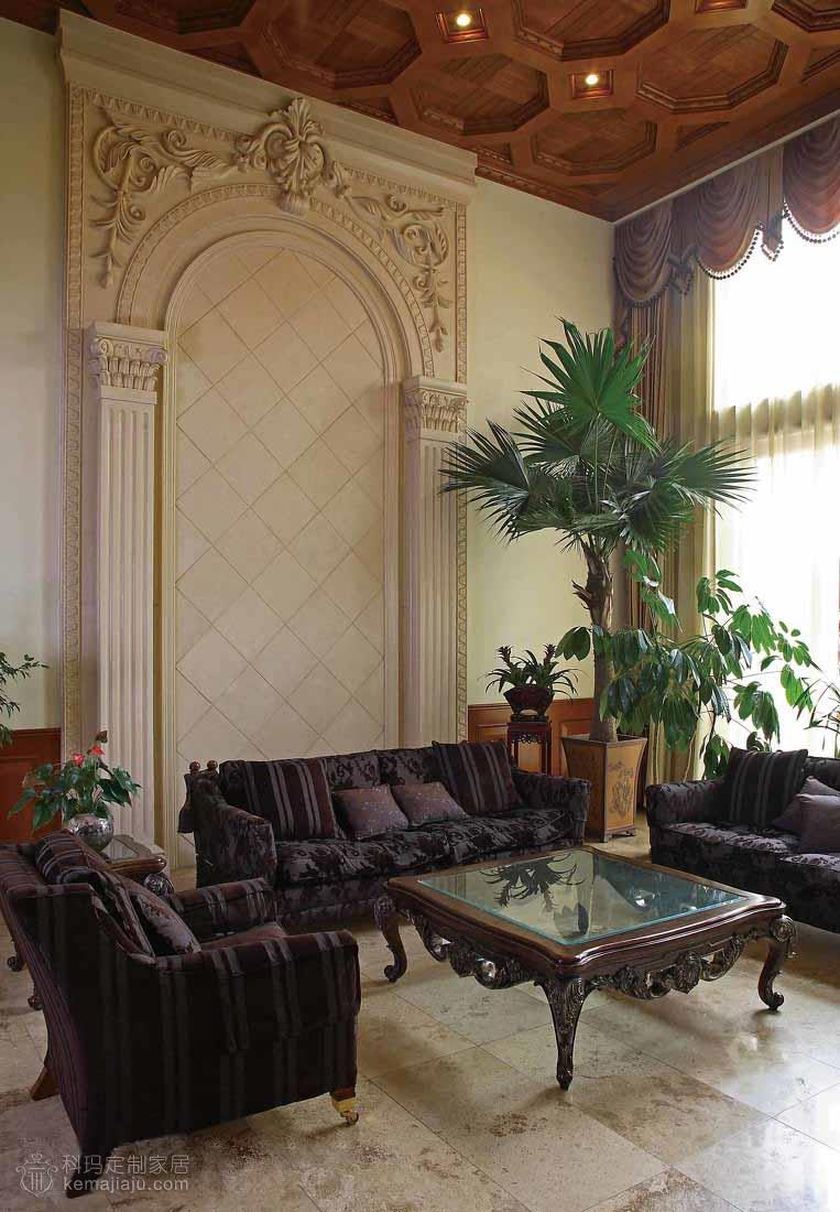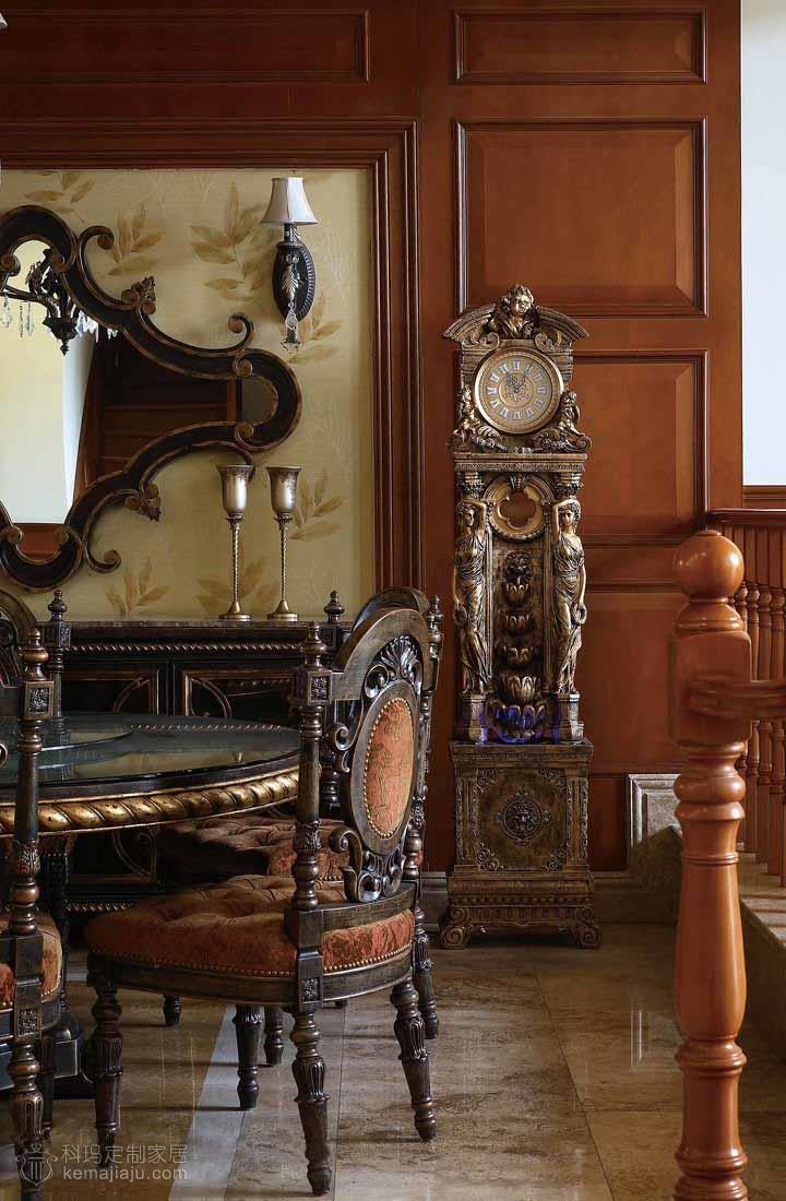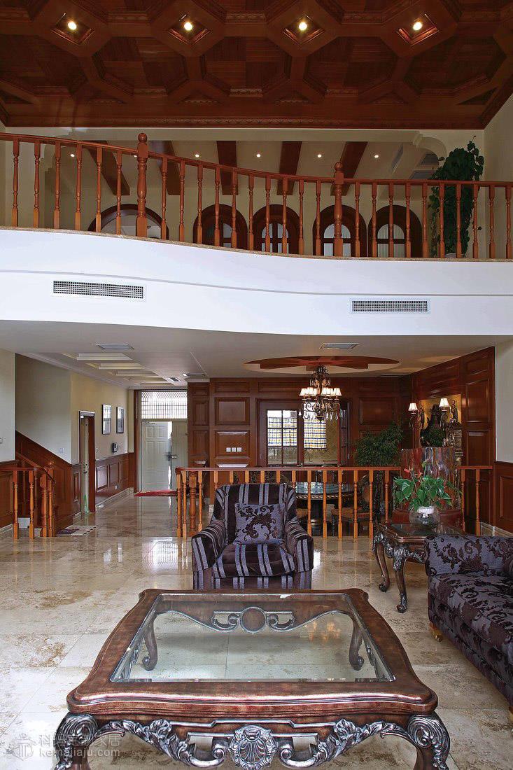 像是一個懷舊的歐洲貴族家庭的百年傳奇故事,詮釋著主人對豪宅整木風格的見解,不需感懷的故事,就可以窺視主人的豪情... 本案以咖啡色為主調,運用實木吊頂、實木護墻以及仿古色大理石,全力打造出一個豪華的別墅空間??蛷d的大型砂巖背景墻搭配實木吊頂給人以堅實、渾厚的感覺,還隱約透著一絲自然的氣息。餐廳和二層開放空間的協調統一襯托出一個大氣的客廳環境。這一切都是那么經典別致,空間盡顯古典但并不過于凝重,一角靠窗的綠植已經映射出一場夏的生機盎然。主臥書房的純木質空間加以古銅色吊燈則像是流淌著一段歷史的回憶。整個空間講究經典與懷古,保持了整體空間適度堅實與渾厚。在設計上推崇典雅與高貴,在功能上更加細化家庭的功能空間。