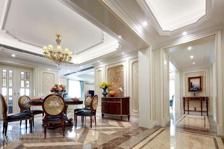 法式家居常用洗白處理與華麗配色,洗白手法傳達法式鄉村特有的內斂特質與風情,配色以白、金、深色的木色為主調。布局上突出軸線的對稱,恢宏的氣勢,豪華舒適的居住空間。